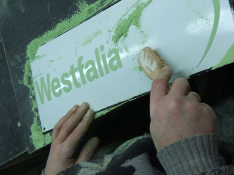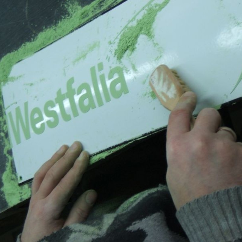 Każda tablica wykonana jest wyłącznie metodą "ręczną"; od wycinania w kawałku metalu, poprzez nadawanie mu specjalnego wypukłego kształtu, nakładanie kolejnych warstw farb emalierskich, ręczne wykonanie znaków, napisów aż po wypalanie w temperaturach 800-900°C Tablice emaliowane wybierają klienci którzy chcą mieć produkt bardzo trwały (energetyka, urzędy) oraz estetyczny stylowy (najczęściej klienci w Europie Zach.) Tablica emaliowana może być oryginalnym dodatkiem w kampanii reklamowej oraz podkreśleniem prestiżu firmy bądź produktu.