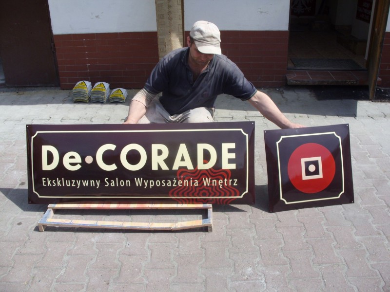 Później następuje już wdrożenie projektu w życie. Specjalnie dobrane blachy są odpowiednio wycinane i kształtowane, następnie każdy kolor zyskuje swoje indywidualne zabezpieczenie, a proces emaliowania powtarzamy aż do ostatecznego zabezpieczenia całej tablicy. Dalej wysoka temperatura sprawia, że emaliowana tablica reklamowa nabiera trwałości i blasku, którego oczekujemy. To zadania wymagające precyzji i doświadczenia, które warto powierzyć specjalistom. Już teraz czekamy na kontakt i zapraszamy do współpracy.